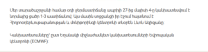 According to weather forecasts, Armenia will experience unstable weather conditions from April 23 to 27, including rain, thunderstorms, and strong winds.