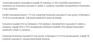 Unstable weather conditions will continue in the coming days, with rain, thunderstorms, and occasional strong winds expected in different parts of Armenia. Residents are advised to stay prepared for sudden changes in weather.