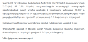 According to the Rescue Service of the Ministry of Internal Affairs of Armenia, the earthquake occurred at 16:02 local time (12:02 GMT).