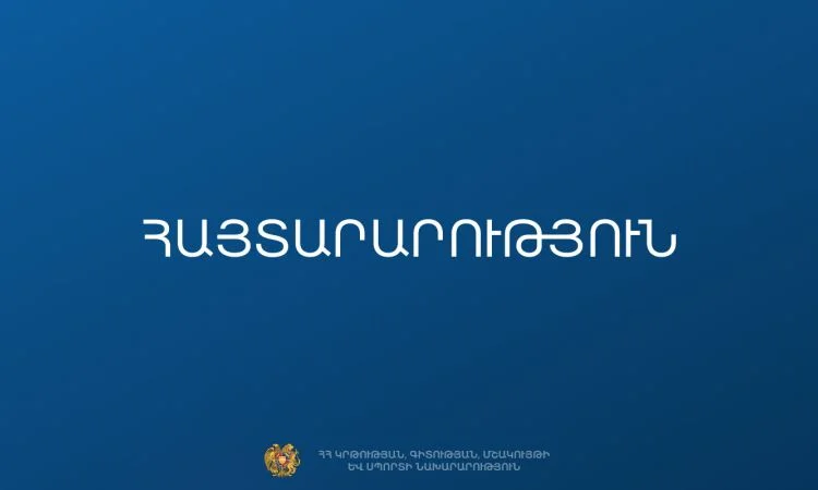 According to the announced timetable, the examinations will take place at the Ministry of Education, Science, Culture and Sports of Armenia (Government Building No. 2, Yerevan) on June 5, 9, 10, and 11.