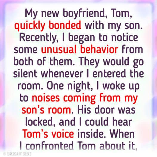 After dating for six months, Tom suggested moving in together and starting a family. Despite her initial hesitation, his argument about the importance of a male role model for Josh during his teenage years made sense. She decided to take the leap, yearning for a sense of security and trust again. However, soon after moving in, she noticed some unusual behavior. Tom and Josh would often whisper to each other, abruptly stopping when she entered the room. They even went on «guys-only» outings without her.