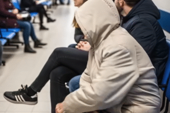 She was an island in the sterile sea of the waiting room. Tucked into a corner, she seemed to shrink